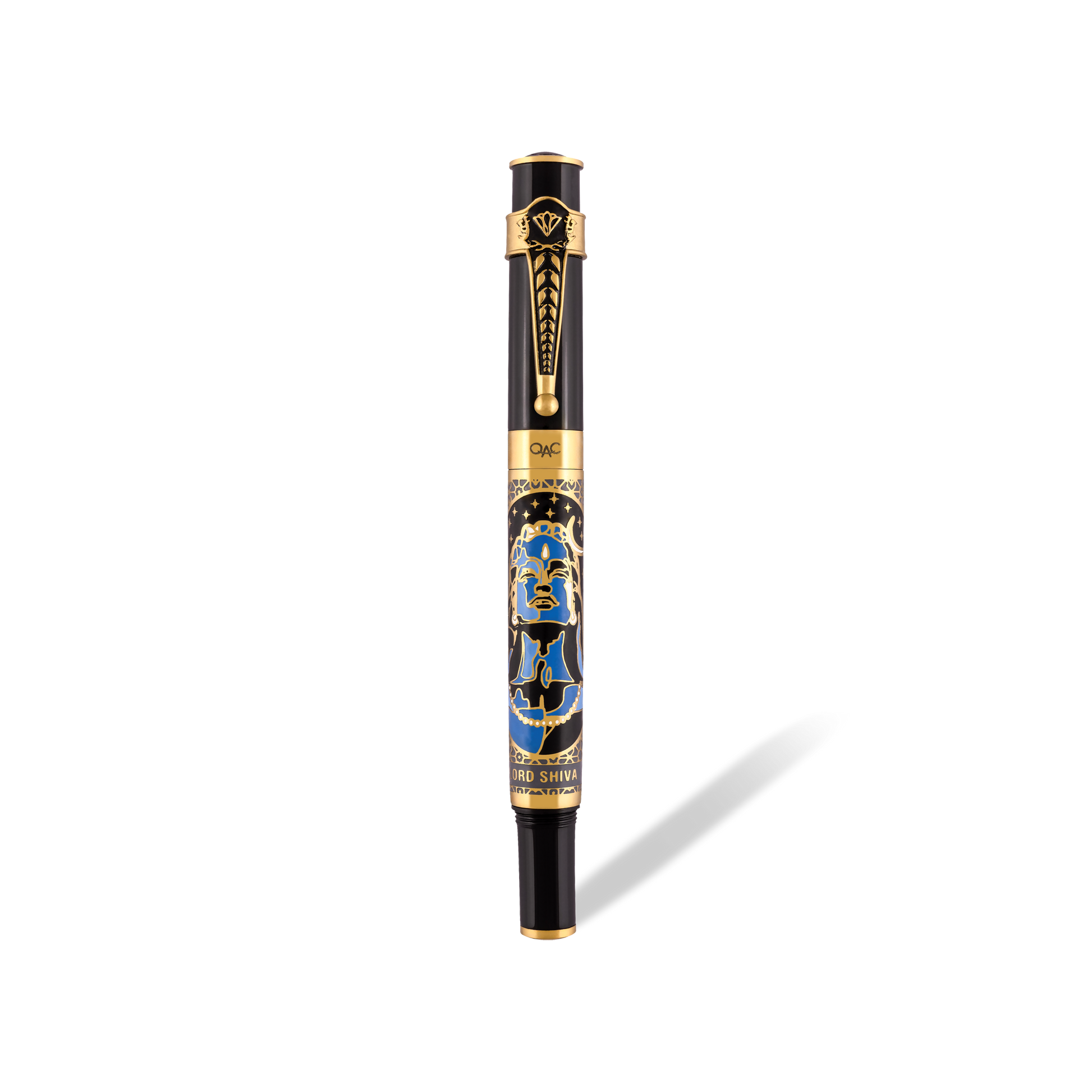 This exquisite FOUNTAIN pen is part of the Sculpture range of Roller Ball pens from OAC. The barrel depicts a hand engraved image of Lord Shiva, the ‘divine dance performed by Lord Shiva. Also known as Tandava Natyam, depicting as dancing the Tandava in the form of Nataraja.