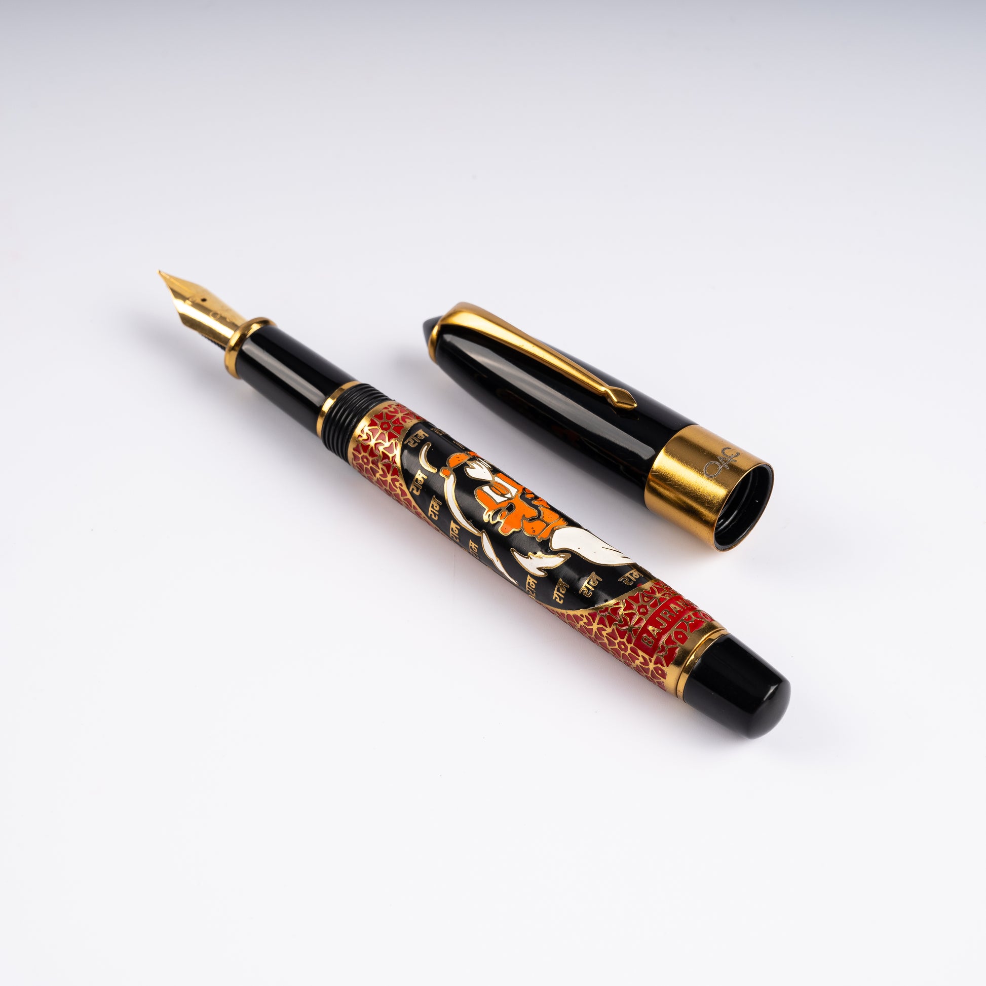 This exquisite fountain pen is part of the Sculpture range of Epic pens from OAC. The barrel depicts a hand engraved image of Bajrangee, also known as Hanuman, is revered as a divine vanara, and a devoted companion of the deity Rama.. He is traditionally believed to be an incarnation of Shiva.