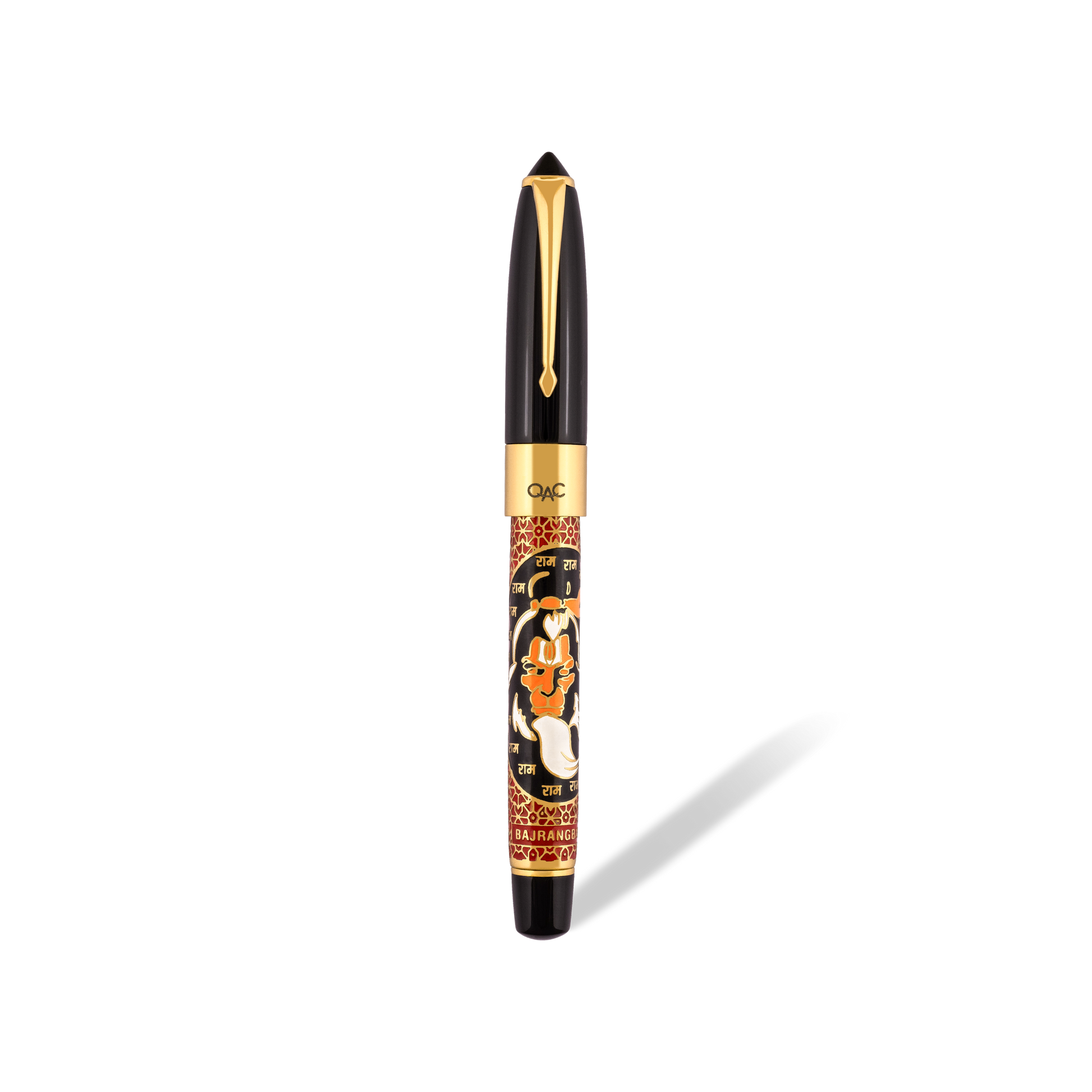 This exquisite ROLLER BALL pen is part of the Sculpture range of Epic pens from OAC. The barrel depicts a hand engraved image of Bajrangee, also known as Hanuman, is revered as a divine vanara, and a devoted companion of the deity Rama.. He is traditionally believed to be an incarnation of Shiva.