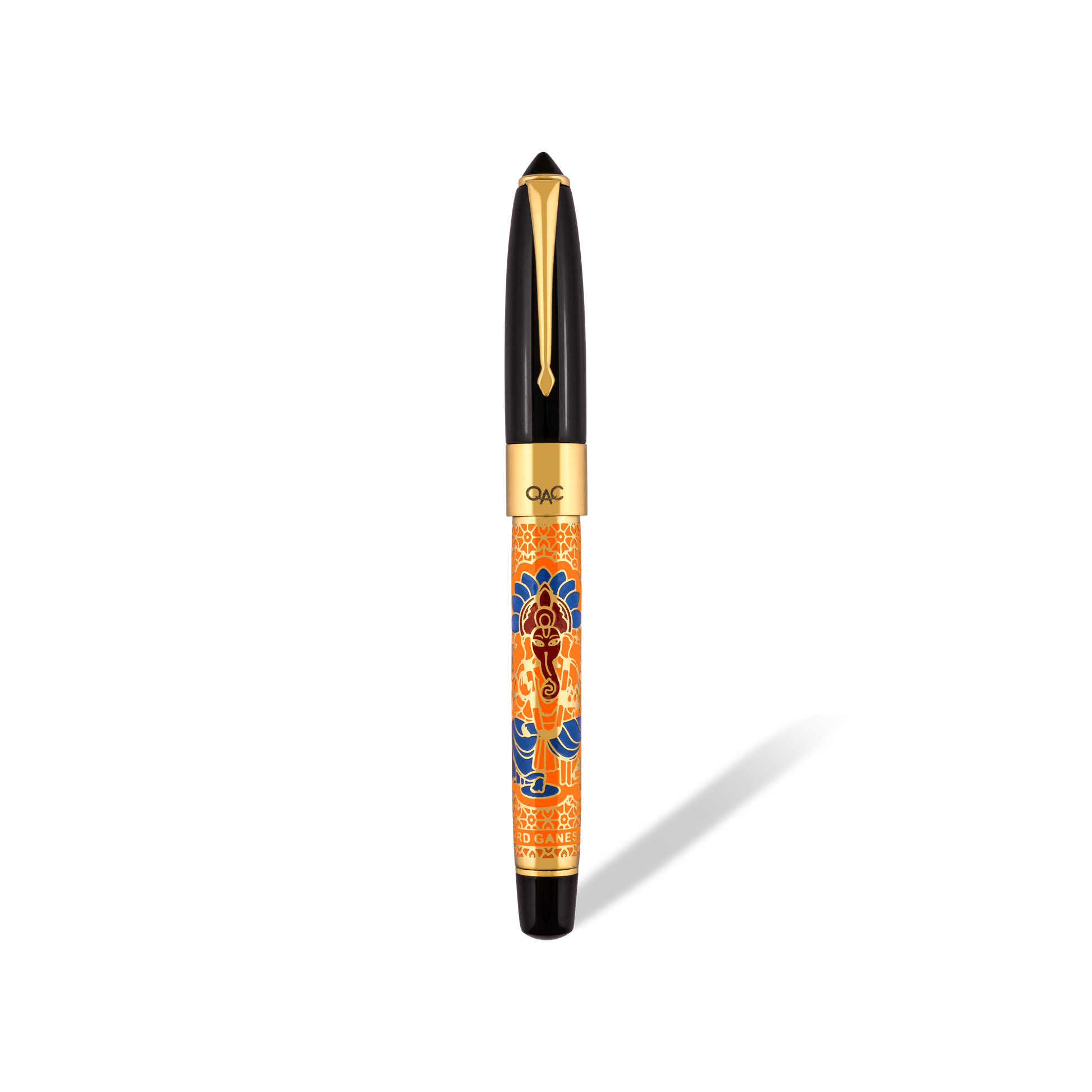 This exquisite ROLLER BALL pen is part of the Sculpture range of Epic pens from OAC. The barrel depicts a hand engraved image of Lord Ganesha, widely revered, most specifically as the remover of obstacles and the bringing of good luck and wisdom.