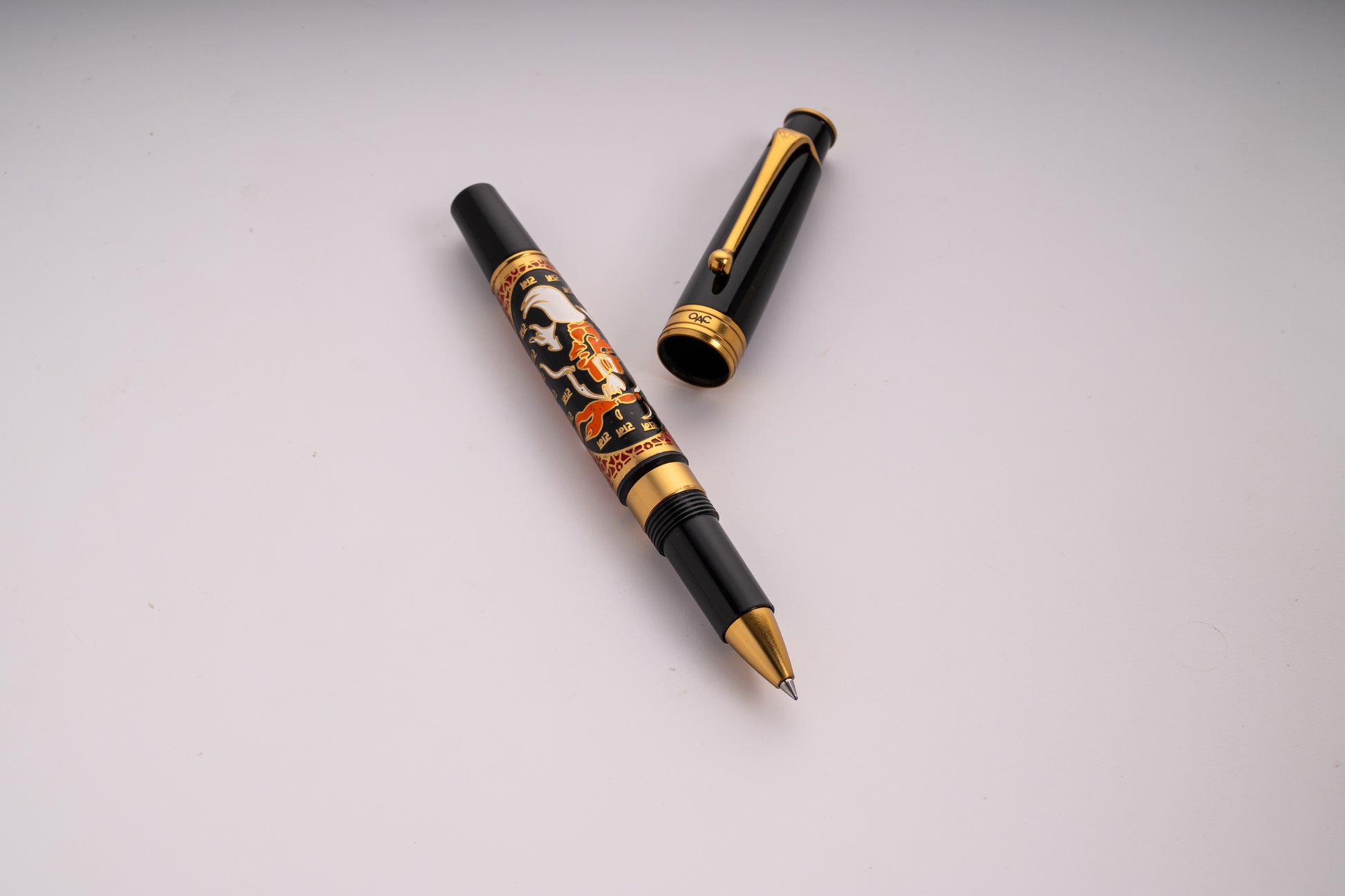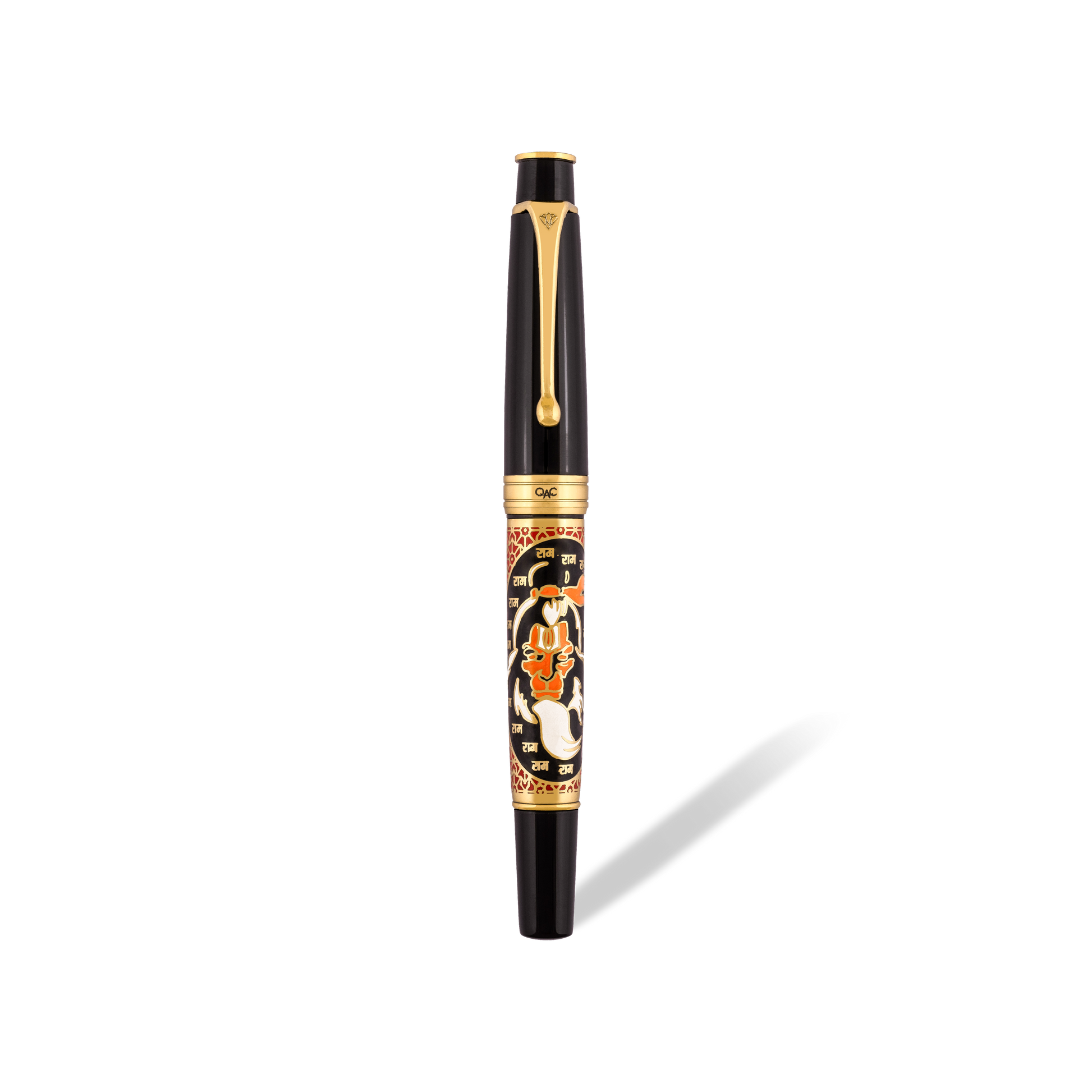 This exquisite Roller Ball pen is part of the Sculpture range of ROYALE pens from OAC. The barrel depicts a hand engraved image of Bajrangee, also known as Hanuman, is revered as a divine vanara, and a devoted companion of the deity Rama.. He is traditionally believed to be an incarnation of Shiva.