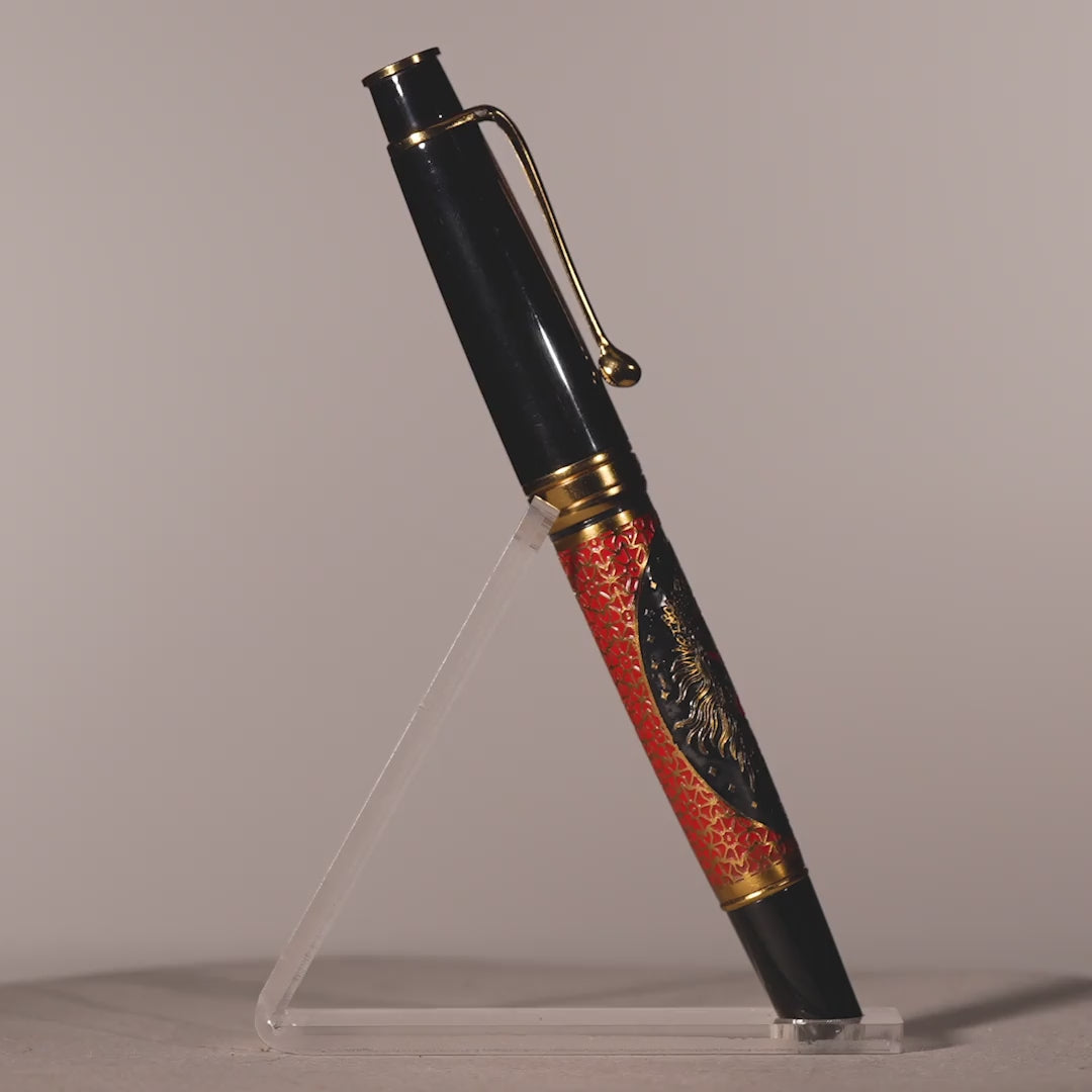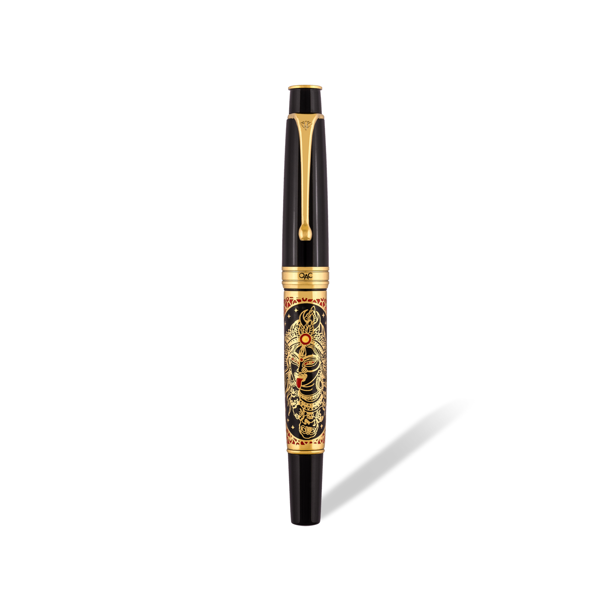 This exquisite ROLLER BALL pen is part of the Sculpture range of ROYALE pens from OAC. The barrel depicts a hand engraved image of Kali, the goddess associated with time, death, violence, sexuality, female empowerment and motherly love. Kali is the first of the ten Mahavidyas in the Hindu tantric tradition.