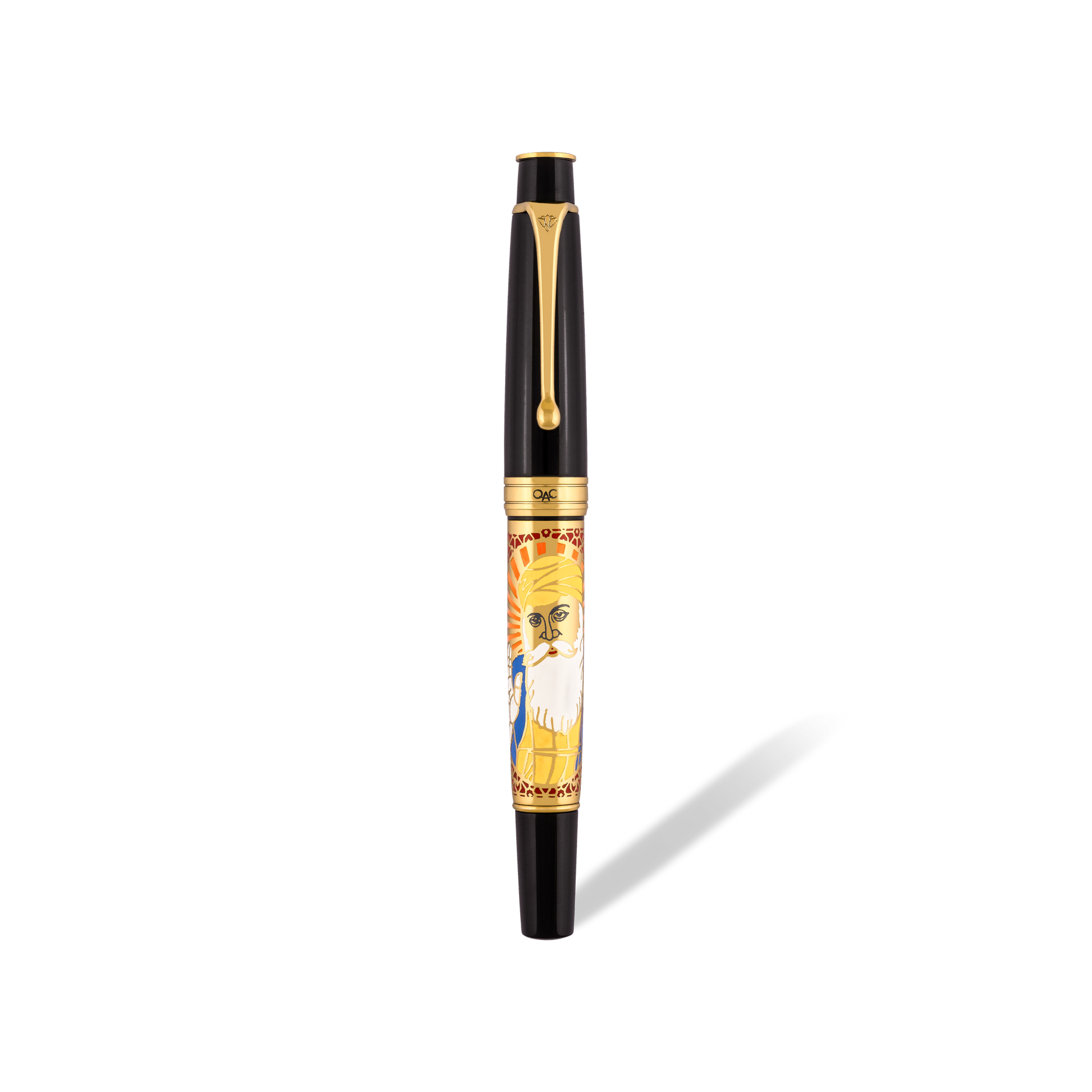 This exquisite Roller Ball Pen is part of the Sculpture range of Royale pens from OAC. The barrel depicts a hand engraved image of Shree Guru Nanak Dev Ji, the first Sikh Guru. Also known as Baba Nanak, he was the founder of Sikhism.